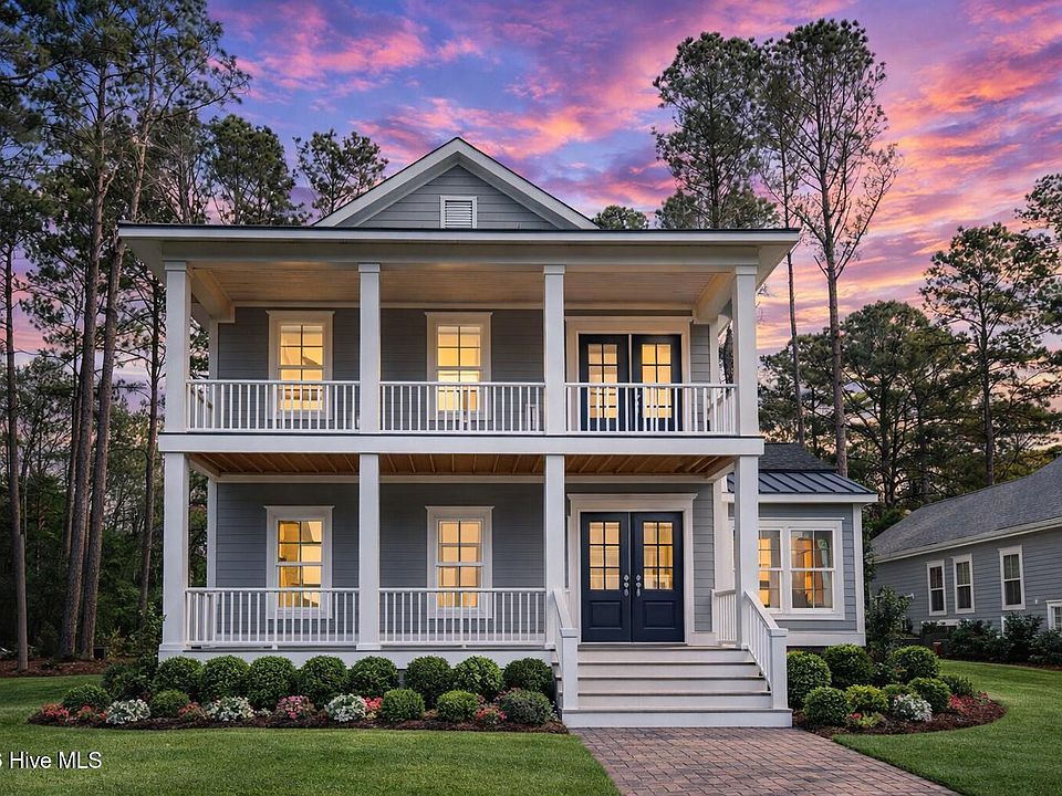 This inviting double front porches, classic brick steps, and elegant tongue & groove ceilings. Inside you will find a 4-bedroom, 3-bathroom home that blends Southern charm with modern living, perfect for retirees, families, or vacation home buyers looking to enjoy coastal Carolina life. Step inside to discover a bright and airy open-concept living space, complete with a gourmet kitchen featuring custom cabinetry, stainless steel appliances, and an oversized island — perfect for entertaining. The primary suite on the main level is a private sanctuary, offering his-and-hers walk-in closets and a spa-like bath featuring an oversized walk-in shower. A second bedroom on the first floor offers flexibility as a home office, guest suite, or cozy den. Upstairs, two additional bedrooms and a full bath create comfortable guest or family space. This home also features not one but TWO outstanding porches perfect for relaxing in the warm coastal breeze!