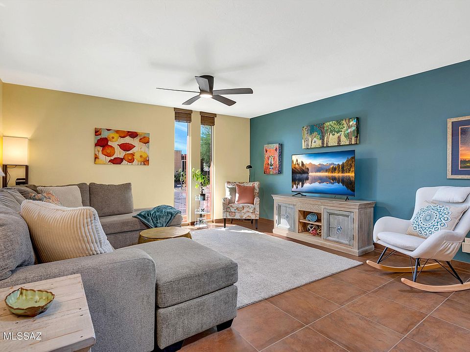 Move-in ready and simply adorable! Las Placitas Townhouses is one of Tucson's best-kept secrets. Tucked away with no through traffic in a quiet, friendly community with a sparkling pool. This 2-bed, 2-bath home also features an enclosed bonus room, perfect for an office or studio. Every detail has been thoughtfully chosen, giving the home a fresh, designer-inspired look that feels both stylish and comfortable. The Acacia butcher-block island in the kitchen is versatile, ideal as an eat-in space for guests or as a prep station for larger gatherings. No carpet, reasonable HOA fees, and a charming, pet-friendly backyard perfect for entertaining. Newer water heater, 2024 roof recoat, and furniture is negotiable. It is ideal for a second home or rental! Call for an appointment, it won't last.