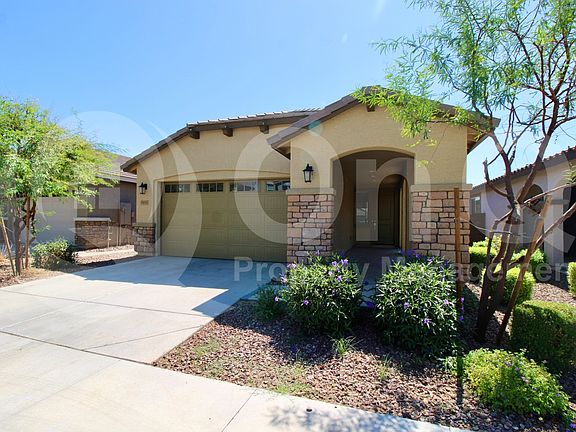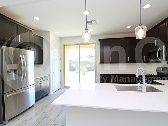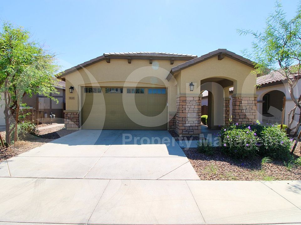 1,396 SQ FT! 3 bedroom, 2 bath home in Western Enclave. Desirable single story floor plan! Trendy eat-in kitchen with included appliances, & large center island. Open concept living/dining, great for entertaining! Neutral interior with plank-tile flooring in all the right places. This home offers 3 nicely sized bedrooms, each with ample closet space! Primary suite with full bath. Blinds! Included washer/dryer. Enjoy a private patio + 2 car garage!