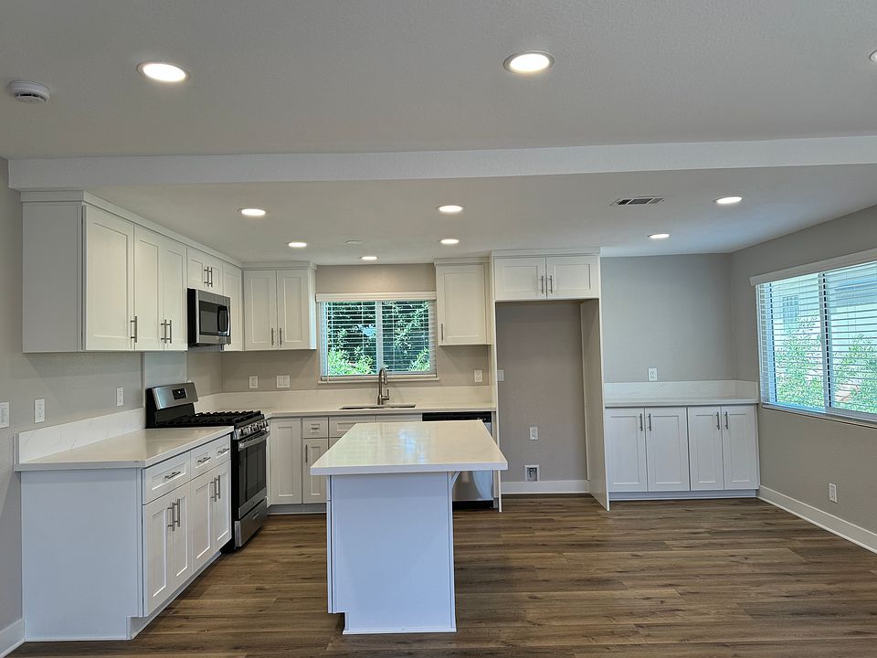 Welcome Home! This newly remodeled luxury-style apartment home features a warm and bright open floor plan, two bedrooms and one bathroom. It is nestled within a gated apartment community which hosts a beautiful, gated entry courtyard with plenty of privacy. The apartment home includes white shaker cabinets with an island, quartz countertops, stainless steel appliances, energy-efficient upgrades, wood plank style flooring, light earth tone colors, walk-in closet, ceiling fans, recessed lighting, window covering, central air and heating. Close to schools, churches, library, park, and shopping center. Centrally located with easy access to the 5, 605, 105 and 60 Freeway. Owner pays for water and trash. Renter is responsible for gas and electric.