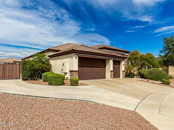 Welcome to your dream home! This remarkable 6-bedroom estate perfectly blends timeless elegance with modern luxury. Nestled on a prime cul-de-sac, it boasts a 3-car garage, RV gate, stone accents, and a professionally landscaped front yard that elevates its curb appeal. Sheer beauty & mesmerizing attention to detail are found inside. High ceilings, tile flooring, stylish light fixtures, and bountiful natural light create a bright, airy ambiance. Large living room enhanced by a wall-mounted fireplace and a dry bar, and the captivating great room are thoughtfully designed for entertaining. Gourmet kitchen showcases abundant cabinetry, tile backsplash, granite counters, a center island, and high-end stainless steel appliances. Don't miss the cozy breakfast nook, ideal for quick meals. Grand owner's retreat impresses with wood-look floors, sliding glass doors to the patio, and an ensuite complete with dual sinks, a make-up desk, a soaking tub, and a walk-in closet. A flexible den and a fully equipped casita offer additional space, excellent for guests or an office. Enjoy incredible mountain views from the oversized backyard, featuring a covered patio, built-in BBQ, fire pit, pergola, and a refreshing pool. Hurry! A deal like this will sell fast! The detached casita is 1,033 square feet and contains a family room, dining room, full kitchen, laundry with stackable washer and dryer, 2 bedrooms and 2 bathrooms. a professional pitching mound in the backyard is amazing, check out the pictures of it,
