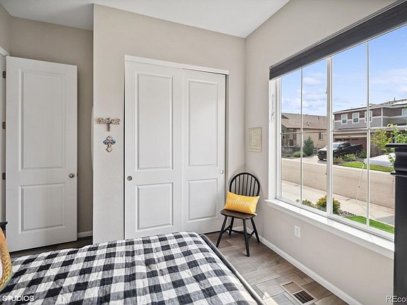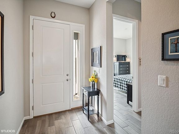3 Plus Bedrooms! Experience the pinnacle of one-level living in this stunning, two-year-old energy efficient Smart Richmond home. Spanning over 3,900 sq ft, this exquisite residence features 3 bedrooms and 3 bathrooms with room to add another bedroom, finished walkout basement offering ample space and modern comfort. The home boasts a giant kitchen island and an open floor plan, easy to keep clean new ceramic tile throughout the main level, perfect for both daily living and entertaining. Situated in the coveted Sterling Ranch neighborhood, it backs onto open space with a cozy fire pit, providing a serene and private outdoor retreat with 3 outdoor living spaces. Enjoy the numerous upgrades that elevate this home to a new level of luxury. Solar Lease in place.