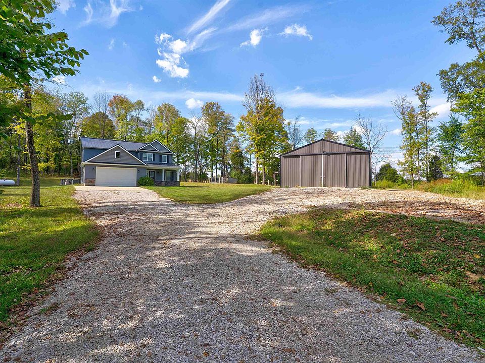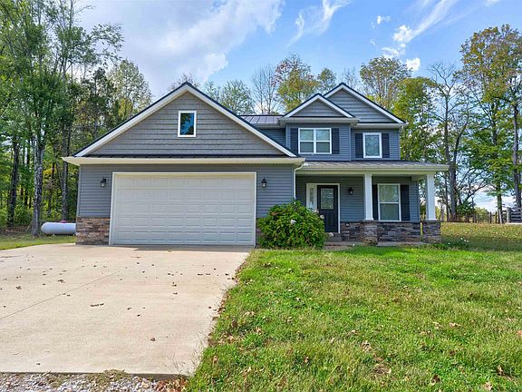 Escape to the country with this beautiful 4-bedroom, 2.5-bath home offering 2,777 square feet of living space on 5 acres in Evanston. The inviting open floor plan is designed for both family living and entertaining, featuring a spacious great room that flows into the kitchen and dining areas. The kitchen shines with granite countertops, a tiled backsplash, stainless steel appliances, and a functional layout. The main-level owner’s suite includes a large walk-in closet and a spa-like tiled shower for everyday luxury. Upstairs, you’ll find a loft area perfect for a second living room, playroom, or office. Step outside to enjoy a stamped concrete patio overlooking the private backyard and pool—an ideal space for gatherings and summer fun. A storm shelter provides added peace of mind during severe weather. For those with animals or hobbies, the property includes a 20x40 cattle barn with a gated area, plus a 30x50 pole barn with endless uses. An additional 25 acres are available if more land is desired. Set in the North Spencer area, this home combines privacy and convenience—just minutes from Holiday World, Lincoln State Park, and the shopping and dining of Owensboro. Offering both comfort and versatility, this is a rare opportunity to enjoy modern country living with room to grow.