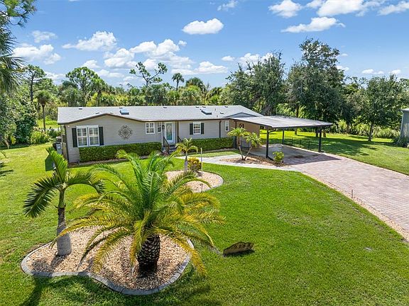 Welcome to The Pines at Sandalhaven in lovely Englewood, Florida , a 55+ deed-restricted, pet-friendly manufactured home community where you own the land with no lot fees. This fantastic 2005 Jacobsen double-wide home offers 1,900 square feet of living space, 2 large bedrooms, a large den that could be a 3rd bedroom, 2 Full Bath, and sits on a rare large double lot, complete with a heated saltwater pool featuring LED lighting and an automatic pool robot vacuum. A brick paver driveway and slate-tile walkway lead you to the inviting front entry. Inside, you’ll immediately forget everything you thought you knew about manufactured homes. The entire home is dry-walled with vaulted ceilings and finished with wide plank-ceramic tile flooring, and berber carpet. Recent updates include a brand-new roof in 2023,and HVAC in 2019, microwave in 2018, critter guard in 2018, and half vapor barrier replaced in 2019. The gourmet kitchen is open and modern with ample oak cabinetry, a breakfast bar, and skylights that fill the space with warm natural light. It also features a sleek appliance package with black and stainless steel finishes, blending style and function. The kitchen flows into the main living area, which is lined with windows accented by plantation shutters and opens to the lanai and pool through sliding glass doors. The primary suite offers a walk-in closet and French doors opening to the master bath, designed with a garden tub, dual sinks, a tiled shower, and a bright, light-filled atmosphere. The guest bedroom and guest bath are spacious, and the bonus room provides flexible space for an office, den, or overflow guests. The highlight of this home is the expansive lanai and heated saltwater pool with LED lighting and an eight-foot deep end, all within a recently rescreened enclosure, creating the perfect private oasis. The large double lot provides extra privacy, while lush landscaping and visiting Florida wildlife bring nature right to your doorstep. A 16x12 shed offers excellent storage and workspace. Residents of The Pines at Sandalhaven enjoy a clubhouse, heated community pool and spa, organized activities, and beautifully maintained grounds perfect for walking and biking. All of this is tucked away in a peaceful, private setting, yet only a short drive to three pristine beaches, shopping, dining, and the scenic trail along Placida Road. This home captures the best of Florida living — privacy, nature, community, and convenience — all in one.