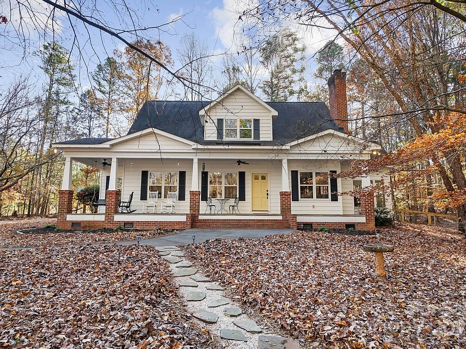 Looking for a private 3.4 acre wooded acre lot with chicken coop? This is it! This custom built home features 3 bedrooms, 2 home offices (one on main and one on upper level) and a huge bonus room! Main level features include a rocking chair front porch, a well appointed kitchen with birch cabinetry, solid surface counters, tile backsplash and stainless appliances, formal dining room with plenty of windows for natural light, generous size great room with fireplace perfect for family gatherings, an office, a guest bedroom and full bath, conveniently located laundry room and the primary suite featuring a private bath with dual vanity, soaking tub and separate shower. On the upper level you will find a generous size secondary bedroom, second office, a hall bath, and a HUGE bonus room. Additional interior features include hardwoods throughout the main living areas, crown molding throughout and walk-in closets in each bedroom. Exterior features include an oversized rear load garage, covered rear porch with beautiful views of the woods and a chicken coop. Great location minutes to downtown Mint Hill where you can enjoy walking to outdoor dining spots & farmers market.