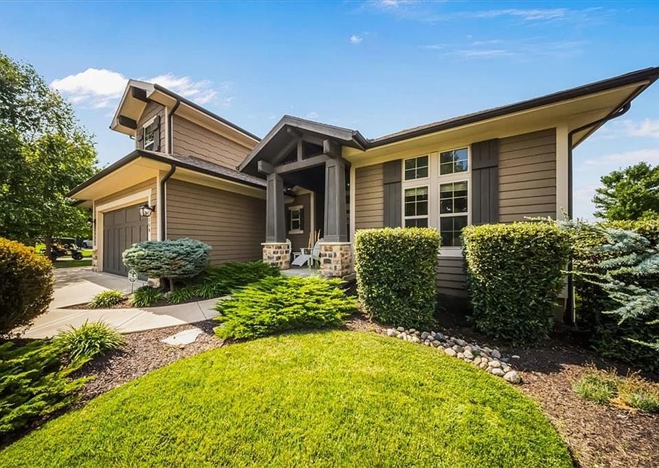 Seller Offering a $5,000 credit to buyer with acceptable offer prior to 12/2!! Welcome to 9158 W 178th Terrace, a stunning Emery Expanded 1.5-story home by James Engle Custom Homes, nestled on a peaceful, level lot with a serene pond view in the desirable Arbor View subdivision. Meticulously maintained and boasting 6 bedrooms, 4.5 baths, and a 3-car garage, this residence is designed for luxurious and comfortable living. Step inside to discover a bright and open layout with soaring ceilings, an inviting flow, and upscale finishes throughout. The gourmet kitchen is the heart of the home, featuring a large center island with granite countertops, stainless steel appliances, and a spacious walk-in pantry with a convenient workstation. The main level offers exceptional convenience with a private primary suite and a flexible fifth bedroom perfect for a home office or guest room. Relax in the spa-like primary bathroom, complete with a freestanding tub, dual-shower head shower, his-and-her vanities, and an expansive closet that seamlessly connects to the laundry room. Enjoy indoor-outdoor living on the covered patio with a cozy fireplace, accessible from both the primary suite and breakfast room. This is the perfect spot for morning coffee or evening entertaining while overlooking the amazing, manicured yard with upgraded landscaping and mature trees.