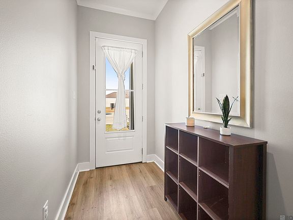 This darling move in ready home in Fieldstone Park offers charm, comfort, and smart living in a gated community with sidewalks, cluster mailbox stations, a peaceful lake and a park like common area. Inside you’ll find 1,789 of living sqft., 3 bedrooms and 2 bathrooms in a spacious single-story layout with 10’ ceilings and an open flow between the living, dining, and kitchen areas. Wood-look flooring runs throughout the main living spaces, with carpet in the bedrooms for added comfort. The kitchen is built for anyone who loves to cook or entertain, featuring granite countertops, an oversized chef’s island, GE stainless steel smart appliances, a gas cooktop, a separate wall oven, and a full walk-in pantry. The primary suite offers a spa-style retreat with dual vanities, a walk-in shower, a garden tub, and a large walk-in closet. A full utility room and multiple linen closets add everyday convenience. This home is also equipped with the upgraded SmartHome package: a WiFi-enabled Interlogix management hub, wireless security system, TruVision security camera, wireless smoke/heat detector, WiFi thermostat with moisture controls, and an enhanced filtration system. Outside, the backyard is fully fenced with an oversized lot that backs up to the neighborhood park, no rear neighbors and the perfect setting for privacy, play, or pets. A clean, modern aesthetic paired with thoughtful design and advanced technology makes this home an effortless fit for today’s lifestyle.