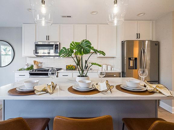 Fully fenced backyardSubway tileWelcoming front porchWide-plank floorsCrisp kitchen shaker cabinetsQuartz countersContainer gardening welcome