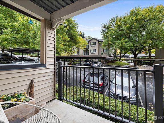 Enjoy downtown Kirkland urban life in this exceptional location within 1 mile of Kirkland Corridor Trail, Google, Kirkland Urban, Performing Arts Center, Peter Kirk Park & pool, post office, QFC, PCC Market. Kirkland has waterfront parks, Carillon Point Marina & cafes, restaurants. Open concept floor plan with spacious living room with wood burning fireplace and newer carpets throughout. Kitchen with quartz countertops and stainless steel appliances. Dining space with modern pendant lighting. 2 spacious bedrooms with recessed lighting. Balcony with storage. 1 assigned parking space under carport. Hot tub, outdoor pool and exercise room on site. No rental cap.