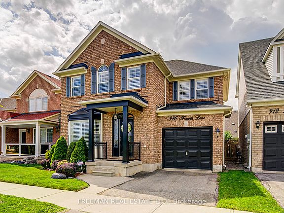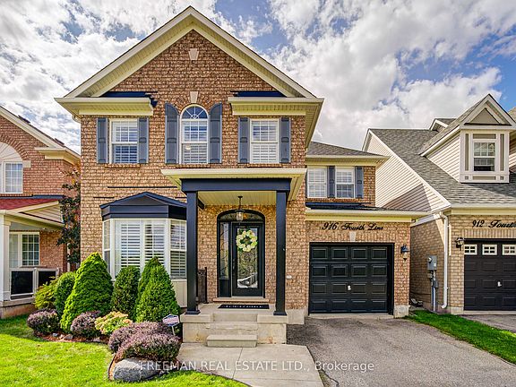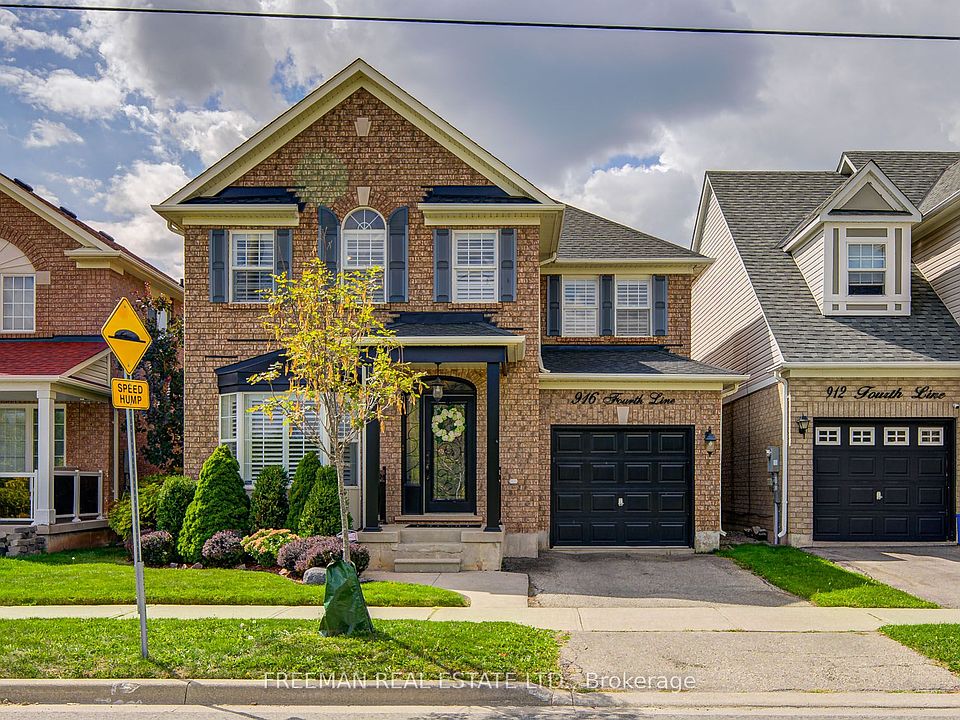 Welcome home to 916 Fourth Line - a stunning Mattamy-built detached home Powell model featuring a bright and spacious living and dining room, expansive gourmet kitchen with ample cabinetry and granite countertops. Majestic plaster crown moulding and premium wood shutters throughout the entire home and a cozy gas fireplace in the family room.The second floor features double doors leading to the master bedroom with a walk in closet and an ensuite bathroom with double sinks and two additional generously sized bedrooms with a gorgeous guest bathroom and the convenience of second floor laundry.The home offers a quiet, private backyard for outdoor living and entertaining, a garage and driveway with plenty parking. Furnace and AC replaced in 2020, roof with premium GAF shingles in 2016.Just steps to the park, walking trails, shopping and transit, this home blends quality construction, comfort and convenience. Book an appointment to see your dream home. Floor Plan is attached.