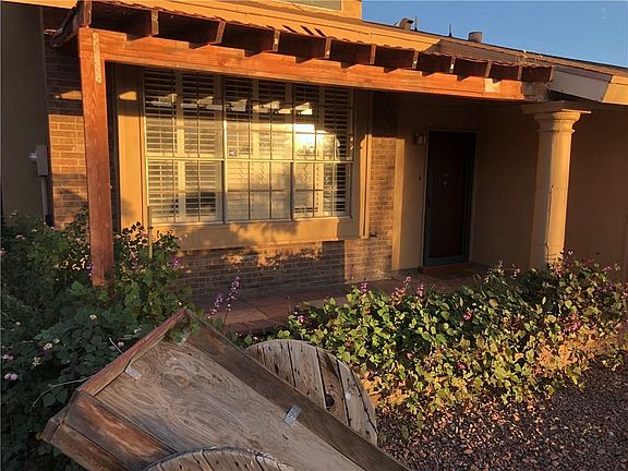 Nestled in the pleasant Northwest neighborhood of the alluring Westside, this lovely house is simply waiting for the perfect family to make it their starter home. This home sits on the edge of a truly majestic canyon, overlooking the Westside of El Paso. Features include a spacious living area featuring a handsome stone fireplace with a dark wood buildout that extends to the very top of a stunning cathedral ceiling. The kitchen offers plenty of cabinet space and connects to the dining area. Three ample-sized bedrooms include spacious closets. Other features include two full baths, storage rooms indoors and out, and a two-car garage. With a private balcony, easy-to-maintain landscaping and relaxing backyard with pergola, this house offers the perfect ambiance for quality family time and entertaining.