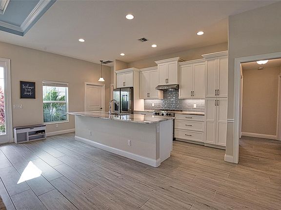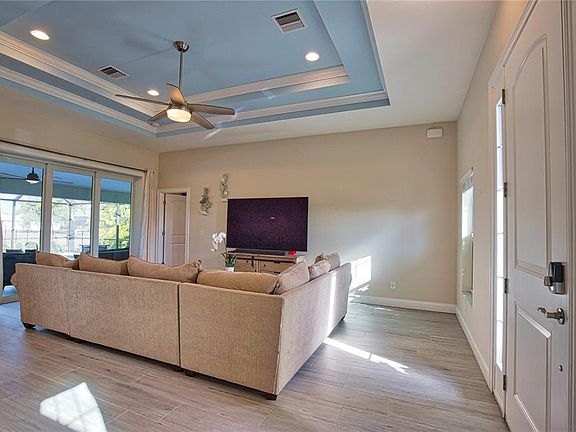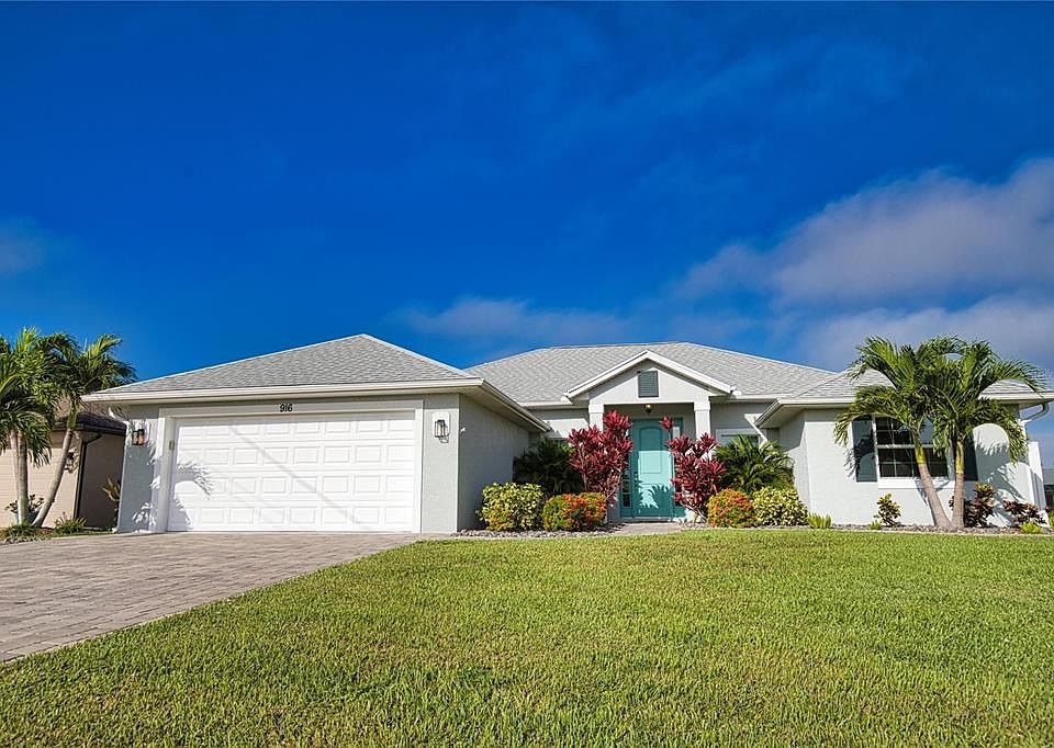 Welcome to your PRIVATE OASIS. This 4.5 years young luxury, custom 2021 built home provides a resort style living you’ve been dreaming of. The paver driveway and walkway lead to a 3-bedrooms, 2 bathrooms split bedroom home set on an estate style waterfront lot, maximizing your canal views all while maintaining your privacy. Inside you will find a thoughtful open concept layout offering 12-foot high, double tray ceilings and wood-look plank porcelain tile flowing throughout. The centrally located chef’s kitchen offers 42-inch, shaker style, full overlay, soft close cabinets and drawers with granite countertops, and upgraded stainless steel appliances with a gas Bluestar oven. This kitchen is sure to bring any culinary dreams to life. Whether you’re entertaining with friends or family, this home provides ample space to mingle, from the dining nook to the large living room, both areas offer 8-foot tall pocketing sliding doors for quick access to your resort style lanai. The master suite offers double acting sliding doors for private lanai access, vaulted tray ceilings, and dual walk-in closets. The master bath provides a large custom walk-in shower with split vanities and medicine cabinets, providing everyone with a personal space. The pocket door between the living room and the 2 large guest bedrooms and guest bathroom offers an added layer of privacy and comfort, with the guest bathroom offering direct access to the lanai and pool areas. As you exit the back of the house through one of the 3 sliding doors to the lanai, you’ll step foot onto plank porcelain tile floors under the overside covered lanai with vaulted ceilings and outdoor fans. This overlooks the beautifully designed heated, saltwater pool with attached spa, both with a pebble tech finish. The pool deck has a resort style finish that ensures it doesn’t get too hot during the warm summer months. As you proceed to the back lawn area, you’ll find a large fenced in yard with amazing views of the surrounding area. As a bonus, there is a paver patio back by the canal offering another area to entertain whether it be lounging in the sun by the canal, fishing or enjoying a fire pit as you watch the most beautiful sunsets Florida offers. This stunningly landscaped property offers numerous palm trees, flowers and privacy palms that boarder your lanai for added privacy while outside. The canal fed irrigation system provides affordability and makes maintaining the landscaping a breeze. If that wasn’t enough, this home also offers impact glass windows and doors, and an epoxy finished garage floor. For peace of mind, this home is located in FLOOD ZONE-X meaning flood insurance should not be required. Rotonda West offers a great location for convenience to world famous beaches, quick access to restaurants, shopping, boat ramps, and an access point close by for the Cape Haze Pioneer Trail. This home truly is the epitome of paradise!