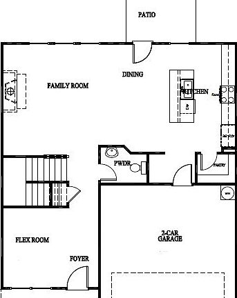 Open-concept family roomCorner pantryBreakfast barLarge walk-in closetSeparate showerVersatile flex roomGarden tub