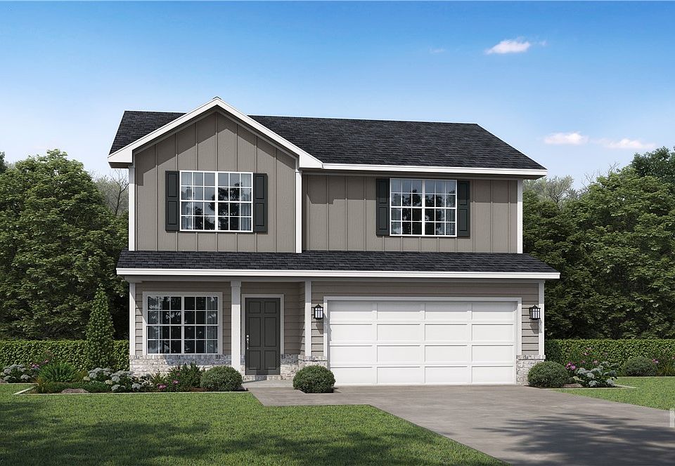 The Bagley plan in The Village at Sassafras offers 4 bedrooms, 2.5 bathrooms, and a flexible layout designed to fit your lifestyle—all on a spacious 0.74-acre homesite. Step into the inviting foyer with a clear view of the versatile flex room, perfect for a home office or second living area. The open-concept family room flows seamlessly into the kitchen, which includes a corner pantry and breakfast bar—great for casual meals and entertaining. Upstairs, three secondary bedrooms share a full bath, while the private primary suite boasts a garden tub, separate shower, and large walk-in closet. The upstairs laundry room adds everyday convenience. Artistic renderings are for visual reference only. Actual floor plans, features, and finishes may vary.