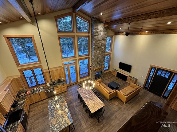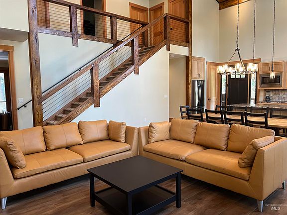 Charming new build located in Spring Mt. Ranch nestled in the pines & aspens, cathedral ceilings with inlayed cedar, exposed beans, massive windows. 4 spacious bedrooms & 5 baths, open floor design with quality high end finishes, custom cabinetry, generous closet space, massive storage in the garage with an electric charging station. Close to golf, lake, Brundage, easy walk to downtown McCall. Community pool, gym, tennis/pickleball low HOA fees.
