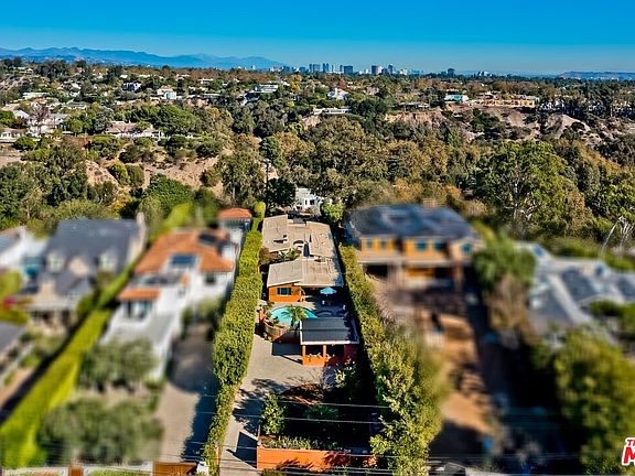 First time on the market in nearly 60 years, this one-level mid-century ranch resides on the deepest lot on the Chautauqua rim. This classic modern hacienda has a total of 6 bedrooms, a pool, and sits on nearly 15k sq. ft. of flat land. The vistas look directly across to the Riviera and SW to the ocean. Beyond the walled entry is the carport, extra off-street parking, the figure-eight-shaped pool, and spa. The foyer welcomes you to the gallery-like living room with fireplace, modern kitchen with Sub Zero & Bosch appliances, breakfast room, the formal dining room, and primary bedrooms. The formal dining room looks out to the grass backyard, outdoor dining area, and built-in BBQ. The primary suite features lovely maple built-ins and a private garden area with a fountain. There are two large bedrooms, a workshop accessing the pool area, and a lanai. The west wing works well for kids, extended family, or guests. Ample deck space allows for afternoon entertaining as the sun sets directly to the West. With such close proximity to the new Palisades Village, the beach, hiking, and mountain biking trails, you can enjoy all the benefits of Palisades life, or access the Westside easily. For many years this great location has been a meeting place for family and friends to gather, swim, dine, BBQ, and enjoy the beautiful vistas of the Canyons. Warm, private, and expansive, the property is ready to inhabit, customize or develop as you wish.