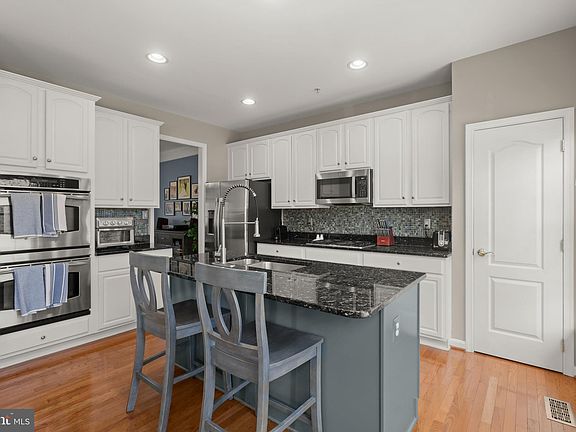 Welcome to this beautifully maintained 3-level end-unit townhouse featuring 4 bedrooms and 3.5 baths, offering an ideal blend of space, comfort, and style. Step inside the inviting two-story foyer accented with picture frame molding and wood stairs leading to the open main level. The gourmet kitchen is a showstopper with hardwood floors, granite countertops, mosaic glass backsplash, stainless steel appliances, gas cooking, island with breakfast bar, pantry closet and a cozy breakfast nook with ceiling fan overlooking foyer. A powder room with pedestal sink adds convenience to the main living space. The formal dining room features tray ceilings with crown molding, picture frame molding, plush carpet, and a beautiful chandelier, while the living room boasts a corner gas fireplace, crown molding, ceiling fans, and slider access to the upper wooden deck — perfect for entertaining or relaxing. A powder room with pedestal sink adds convenience to the main living space. Upstairs, the primary suite offers a walk-in closet and a luxurious ensuite bath complete with a garden tub with jets, walk-in shower, and double vanity. Two additional bedrooms with closets, a hall bath with a tub/shower combo, and a laundry closet with washer and dryer complete the upper level. The fully finished lower level includes a spacious recreation room, fourth bedroom currently being used as a study, and a full bath with a walk-in shower, plus a walkout to the paver patio and fully fenced backyard. Additional highlights include a 2-car garage with interior access, and tons of natural light. This move-in ready home combines elegance and functionality in one of Bel Air’s most sought-after communities — The Parke at Irwin’s Choice.
