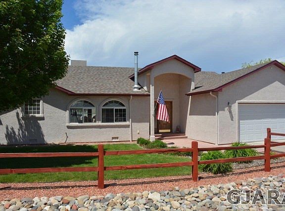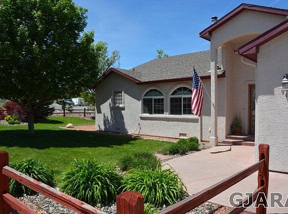 Great Fruita stucco rancher with 3 beds/2baths and an oversized 2 car garage. Completely repainted on the inside, 2 separate living areas, bright kitchen and split bedroom design. Vaulted ceilings! Huge RV parking area 13x50, shed, fire pit, patio and nice views Great home, get inside today!