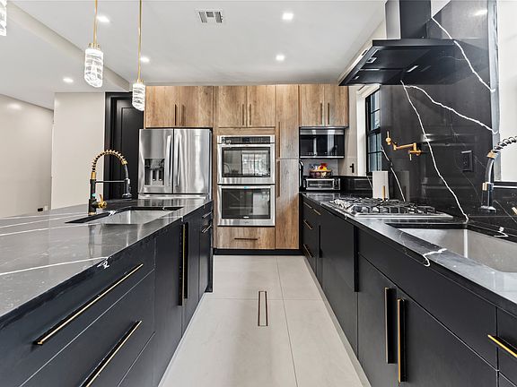 MPECCABLE GUT-RENOVATED TWO-FAMILY TOWNHOUSE IN QUIET MIDWOOD Graced with 3 bedrooms, 2 full bathrooms spread across 1,606 sq. ft., this pristine townhouse offers oversized windows, recessed lighting, high ceilings, and large format floor tiles that create bright, inviting spaces to entertain, lounge, and relax. Open-concept living and dining areas flow seamlessly into windowed chef's kitchens adorned with massive eat-in waterfall islands, custom cabinetry, sleek stone countertops and backsplashes, two sinks with chic pull-down faucets, wall-mounted bronze pot fillers, and integrated high-end stainless steel appliances, including wall-mounted ovens and gas cooktops. Easy access to immaculate bathrooms featuring richly veined stone tiles, stylish vanities, bronze fixtures, rainfall showerheads, sliding glass shower partitions, walk-in showers, and deep soaking tubs. Additional highlights include central air, and convenient in-unit laundry. TRANQUIL OUTDOOR SPACES Welcoming residents is a gated front yard with a lush landscaping plot, offering curb appeal and a lovely entrance to the rest of the home. The large backyard features tall, ivy-strewn privacy fencing and easy-to-maintain stone pavers, making it ideal for grilling, alfresco dining, and container gardening.