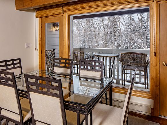 This beautiful 3 bedroom, 2 bath first floor condominium is perfectly located with incredible views of the Roaring Fork River. The Queen bedded primary bedroom has views of the Roaring Fork River and its ensuite bathroom has dual vanities and a steam shower. It is the perfect place to relax year round listening to the sounds of the river on the private balcony or the cozy warmth in front of the wood-burning stove. Two additional guest bedrooms with a shared bathroom and laundry are located off the kitchen with a queen bed and bunk beds perfect for children. Conveniently located within walking distance to City Market, The Silver Queen Gondola and Restaurant Row make this the perfect Aspen Location.