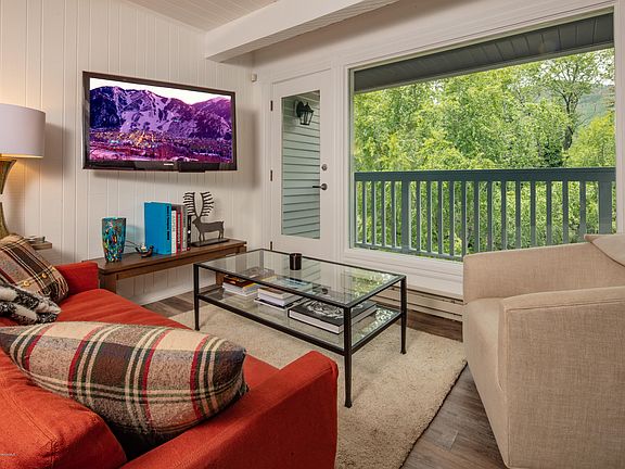 Enjoy the natural beauty and tranquility of a riverfront setting from this contemporary condo located only a few blocks away from the core of Aspen and the Silver Queen Gondola. Perched on the second floor overlooking the Roaring Fork River, this three-bedroom two bath unit was recently remodeled in 2014. This peaceful and quiet setting offers views towards Red Mountain and Smuggler with a private deck and proximity to all of Aspen's amenities.
