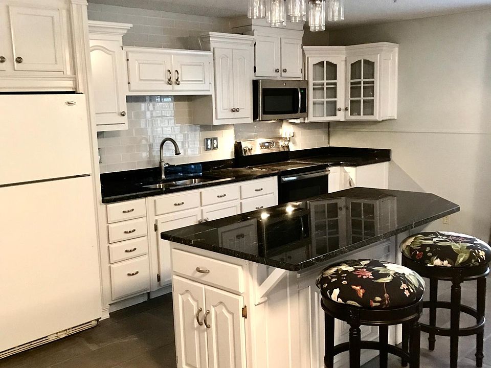 1000 sq. ft, 1 bed/1 bath open concept, best suited for single/couple, with plenty of off street parking. Dedicated carport right outside rear door. Property grounds fenced. Finishes include paint, tile, commercial carpet, window blinds, drapery, plumbing and light fixtures, central A/C. Kitchen is lovely with beautiful cabinetry and granite countertops and kitchen island/stools. Washer/dryer in unit.