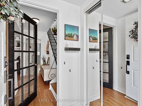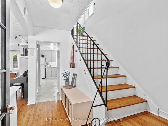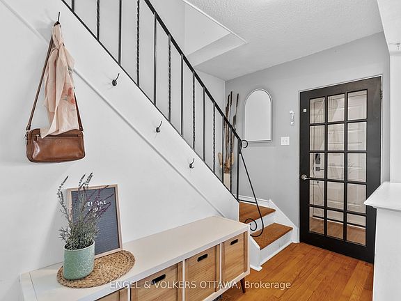 This beautifully maintained and charming semi-detached home located in the heart of Carlington blends classic character with modern functionality, creating a warm and inviting space for everyday living. The main floor features an inviting entryway with a modern glass-inset door, full-height mirrored closets, and a black-framed glass partition for added style. The sunlit living room showcases a large picture window overlooking the front yard and natural wood flooring. The adjacent dining area is perfect for entertaining, with hardwood flooring, a striking geometric pendant, and oversized windows that fill the space with natural light. The thoughtfully designed kitchen boasts grey cabinetry, brushed nickel hardware, butcher block countertops, and a stone accent wall. Upstairs, the primary bedroom offers large windows, hardwood floors, and modern lighting, while the two additional bedrooms provide flexibility for family, guests, or a home office, each featuring thoughtful design details like accent walls and woven light fixtures. The vintage-inspired bathroom adds charm with black and pink tilework and a classic tub-shower combination. The fully finished lower level offers a bright recreation room with recessed lighting, durable vinyl plank flooring and a 2-piece bathroom. The dedicated laundry area includes a sink, front-loading washer and dryer, and built-in cabinetry for storage. Step outside to a private, fully fenced backyard designed for relaxation and entertaining. A stone patio provides space for dining and lounging with room for a BBQ. This home offers quick access to local parks, including Carlington Park's trails, tobogganing hill, and mountain biking course. Excellent schools, public transit, shops, and cafés are nearby, and quick access to the Queensway ensures an easy commute across the city.
