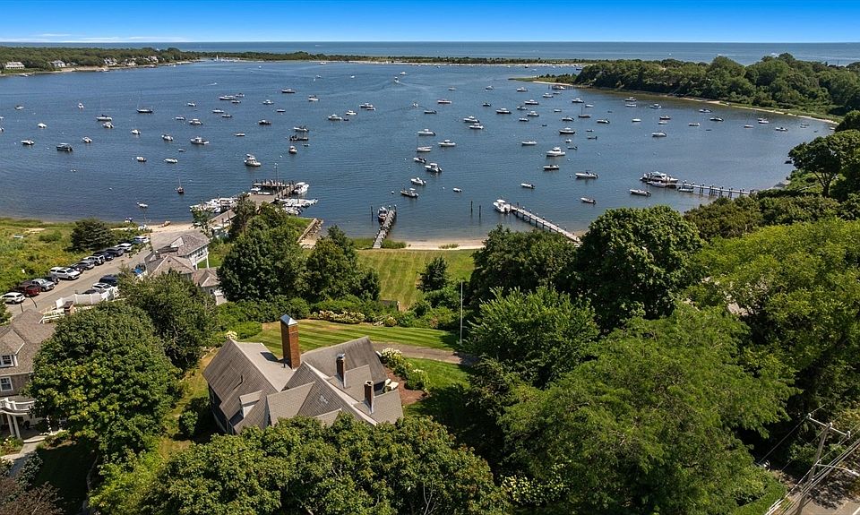 Set in the heart of Cotuit Village, this iconic waterfront home features a significant deep-water dock and sandy beach on Cotuit Bay. An exceptional opportunity for boating enthusiasts, a recorded dock and dredging license allows for dredging to a depth of five feet below mean low water. The five-bedroom residence is ideally sited on a bluff with commanding views of Cotuit Bay and Nantucket Sound beyond, surrounded by vibrant gardens and manicured lawns. Inside, thoughtful details include vaulted ceilings, exposed beams, and expansive windows that frame the harbor from nearly every angle. An open layout connects living and dining spaces to a spacious deck and brick terrace, perfect for outdoor living and entertaining against a breathtaking backdrop. Located steps from all that Cotuit Village has to offer, this extraordinary property blends timeless charm with an unsurpassed lifestyle, creating the quintessential seaside retreat.