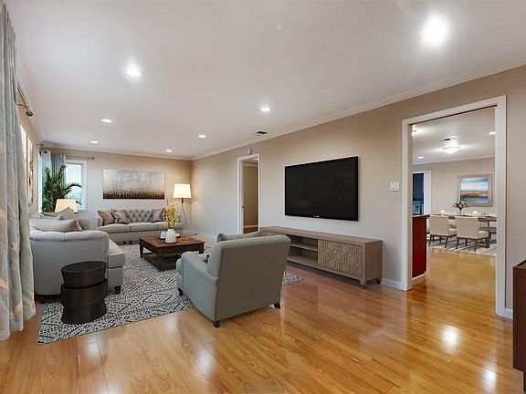 Welcome to this beautifully remodeled 4-bed, 2-bath home in El Sobrante! With 1,512 sqft of living space on a 9,100 sqft lot, this property offers comfort and endless possibilities. Step inside to discover a spacious living room, perfect for entertaining and quality family time. The home has been thoughtfully remodeled, complete with crown moldings throughout, offering timeless luxury and style. A newer roof adds peace of mind and protection. A standout feature of this property is the large lot, which not only offers ADU potential for extra living space, a home office, or a rental income opportunity, but also lot split potential via SB9. The large 20+ ft. wide parking pad that currently fits 10+ cars could also serve as the egress for the rear lot. Situated minutes from grocery stores, Target, the Shops at Hilltop, and I-80!