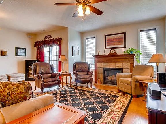 A perfect 10.9ft ceilings,Hardwood floors,Custom kitchen with Kitchen Aide Commercial style appliances + fridge,Quartz counters, under mounted sink,Custom Decor hood vent.Gas fireplace with beautiful mantle.Corian counters in baths upgraded fixtures.Den can be 3rd bedroom. 19x25 patio + firepit.Gas plumbed dryer& BBQ.Built-in storage in utility.New Ext. paint last summer.fenced lot. Origional owner Still looks new....