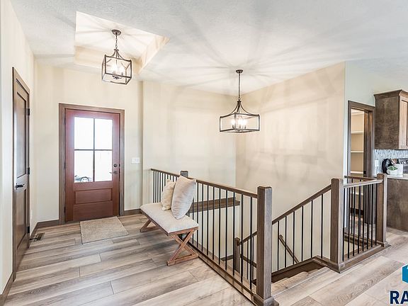 Another Quality Home by Joshua Inc. atop of North Sioux Blvd, in Brandon. Come see the Views. This 5 Bedroom 3 Bath Walk-Out lower level Home with a 3 Stall Heated Garage and additional working/hobby space. The kitchen is open with a spacious Island, Large Walk-In Pantry, Tile Backsplash, Quartz Counter tops. Dining area you can spread out and entertain the entire family. Slider to a Covered Deck. Beautiful Tile surrounded Electric Fireplace. Luxury Vinyl floors. Primary Bedroom bathroom offers a gorgeous tiled shower, heated floor. Front facing 2nd Bedroom with closet. Laundry room off back entryway. The u-shaped stairway to lower level walk-out family room. 3 additional bedrooms and 3/4 Bathroom. Finished storage/hobby/study room. 3 Stall garage with working area, floor drain, Heated. Come see the view from atop of Brandon.
