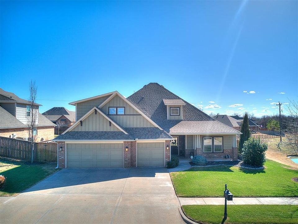 This home has it all! In addition to a prime location, imagine a home sitting on a spacious greenbelt side lot with a peaceful water view! Meticulously maintained! This home offers 4 bedrooms, 4 (2 full and 2 half) bathrooms, and a designated bonus room (could be a 5th bedroom if needed). Your outside space boasts extensive landscaping and a newer upscale capped fence. You will love cooking evening meals or entertaining under the spacious patio with a grand cathedral roof. Other improvements and upgrades include a garage epoxy flooring, storm shelter, solar tube lighting, rich wood beam, granite window sills, custom window coverings, fresh paint, barn door, added trees, sprinkler system, gym-ready flooring, crown molding, under counter lighting, customized two entry pantry, wood floors, and more! The surrounding amenities include ample shopping and restaurants.