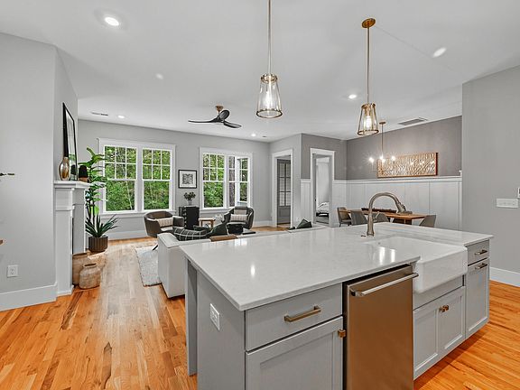 From the moment you arrive, this home feels like it belongs to something bigger — a neighborhood where friendly waves, evening strolls, and community connections are part of daily life. Thoughtful design pairs with a welcoming atmosphere, making this home as warm as it is functional. At the heart of the home, the kitchen shines with a generous island and a fabulous walk-in pantry, flowing naturally into bright living and dining spaces. The first-floor primary suite is tucked away for privacy and comfort, while a flexible main-level bedroom with French doors offers the perfect spot for a home office or guest room. Upstairs, three additional bedrooms and a spacious bonus room provide plenty of room to gather, retreat, and grow. Out back, enjoy wooded views that bring a sense of peace and privacy. Just steps from your door are the pool, fitness center, playground, and community garden — favorite spots where neighbors meet and friendships grow. And when it's time to head out, you're minutes from the restaurants and shops of Southpoint, I-40, downtown Durham, and Franklin Street in Chapel Hill — close to everything, yet nestled in a community that truly feels like home.