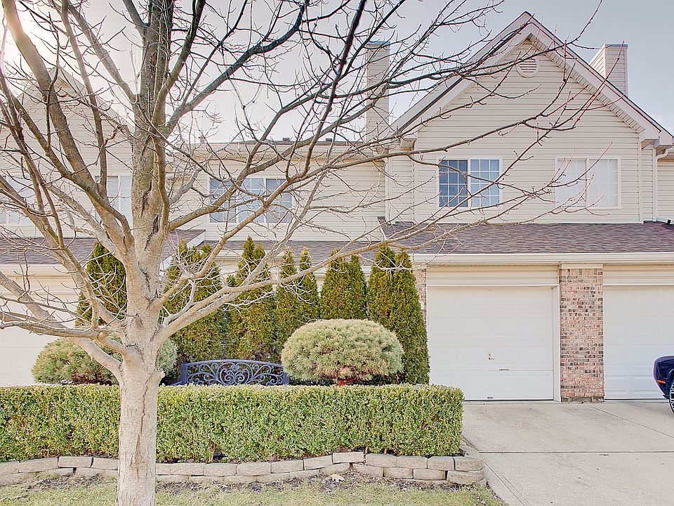 Absolutely stunning find! This 2-story condo w/attached garage is move-in ready!! Gas fireplace with surrounding stacked stone from floor to ceiling. Unique, super-sized granite breakfast bar/peninsula is perfect for cooks. Newer, updated cabinets and appliances including washer/dryer. Large primary bedroom with organized walk-in closet. New tub/shower, vanity, fixtures with Bluetooth speaker on with light switch. Enjoy morning coffee and sunrises on your private patio. Easy access to I-465. Water Softener included. HOA fee includes water, sewer, trash, exterior maintenance. Take a look today!