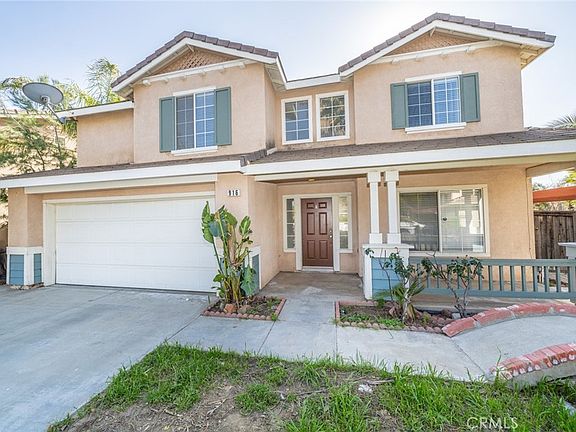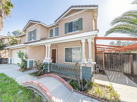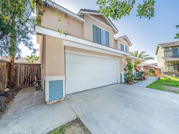 Welcome to this 5-bedroom house on a large lot located at the end of a cul-de-sac in the highly desired neighborhood of May Ranch in Perris. You are welcomed with a covered front porch. As you enter, there is a 2 story ceiling with high windows to bring in the natural light, followed by the living room/dining room combo, then the kitchen with freshly painted cabinets and new appliances and is wide open to the family room with a fireplace and media niche. Rounding out the first floor is a half bath, inside laundry, and direct access to 2 car garage. Upstairs are all 5 bedrooms, two are dual masters with one having an en-suite bath with dual sinks, a shower in the tub with glass doors, and a walk-in closet. 4 bedrooms share a secondary bath with a tub/shower combo. There is a large wrap-around backyard with fruit trees. Updates include Brand New Interior Paint, Brand New Carpeting, and Brand New Stainless Steel Kitchen Appliances. Low Taxes and no HOA keep your payments low.