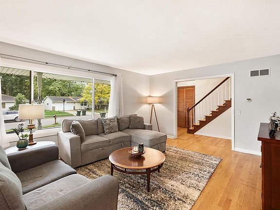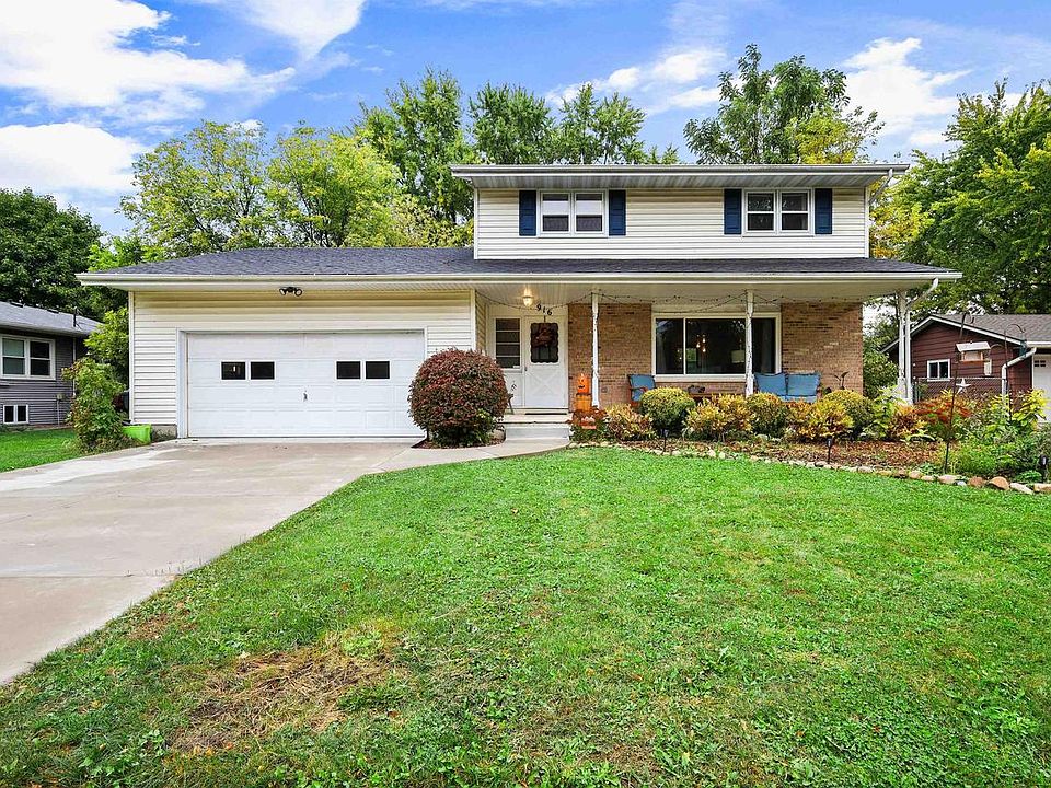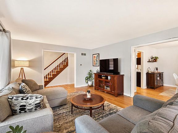 Warm and wonderful describes this 3 bedroom 2 story that offers hard wood floors throughout, large living room, formal dining, updated kitchen with stainless appliances, quartz counters, tile backsplash, plus a cozy family room with fireplace right off the kitchen! Relax on the new composite deck in your fenced in backyard full of mature trees and beautiful gardens. Upstairs offers 3 large bedrooms with walk through bath to the primary bedroom. All this is nestled on a quiet street, but still walkable to so many things Sun Prairie has to offer. Updates since 2018 include roof, AC, composite deck, chimney liner, quartz countertops and backsplash, some new windows, furnace, water softener, water heater and concrete driveway, and more.