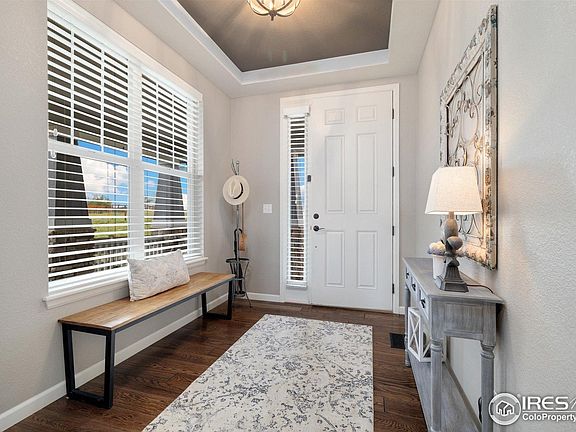 Mountain views, rare privacy, and a prime Flatiron Meadows location--this home delivers. Perfectly positioned on a premium corner lot, the home borders a scenic walking trail. Whether working from the main-floor office, unwinding on the charming porch, relaxing in the primary suite, or hosting fireside gatherings in the backyard, you'll be surrounded by tranquility. Inside, the home reflects warmth with beautiful wood flooring, soaring vaulted ceilings, a dramatic catwalk, upper loft, and a striking double-sided stone fireplace. The chef's kitchen is the heart of the home-featuring stainless steel appliances, expansive granite counters, abundant cabinetry, and designated spaces for a coffee bar and built-in buffet in the dining area. A versatile main-floor flex room with a full bath makes the perfect guest suite or second office.The fully finished basement adds even more livable space with a recreation zone, built-in bar ideal for game days, movie nights, gym, guest bedroom, full bath, and generous storage.The xeriscaped front yard offers Zen-like curb appeal for low-maintenance beauty, while the backyard is built for entertaining-complete with hardscape, built-in ledge seating, raised garden boxes, lounging space, and room for corn hole or summer BBQs. Owned solar panels provide added efficiency and long-term savings! Easy walk to the neighborhood school and park. Whole home water filtration system! Solar owned! Ready to welcome you home!