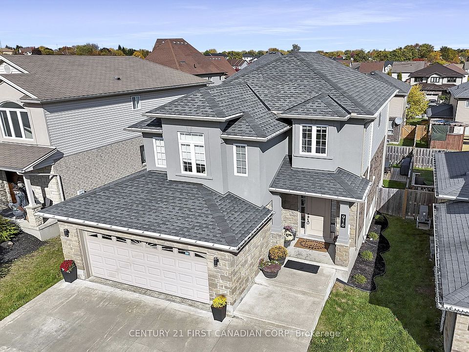 Welcome to this beautiful family home in the highly sought-after Northwest London Neighbourhood. Offering approximately 2,000 Sq ft above grade plus a finished basement, this well maintained home was originally a model home and showcases quality finishes throughout. The open concept main floor features a spacious living room with hard wood flooring, a gas fireplace and a bright dining room. The kitchen boasts granite countertops, backsplash, a functional pantry and ample cabinetry. Upstairs, you will find a sun-filled family room, ideal for relaxing or as a versatile additional living space. Just a few steps up are three comfortable bedrooms, including a primary suite with a 5- piece ensuite and a walk-in closet with built-ins. A convenient second level laundry room completes this floor. The finished basement expands your living space with a recreation room, two additional bedrooms and a 3-piece bathroom, perfect for guests or teens. Step outside to enjoy the oversized high deck overlooking a beautifully recently landscaped backyard (2025) ideal for outdoor gatherings. Recent updates include Three new split units for added cooling and heating comfort in the family room, primary bedroom and the third bedroom (2025). The concrete drive way has been extended to become a three car parking space (2019). New Fridge with warranty (2023). New Stove with warranty (2025). New gas line for an option of a Gas Stove (2025). New Kitchen sink (2024). Carpet in the second level was replaced in (2022). New Stucco exterior (2024).This home is ideally located close to schools, parks, restaurants and shopping centers. Don't miss your chance to view this exceptional property that is the perfect place to call home.