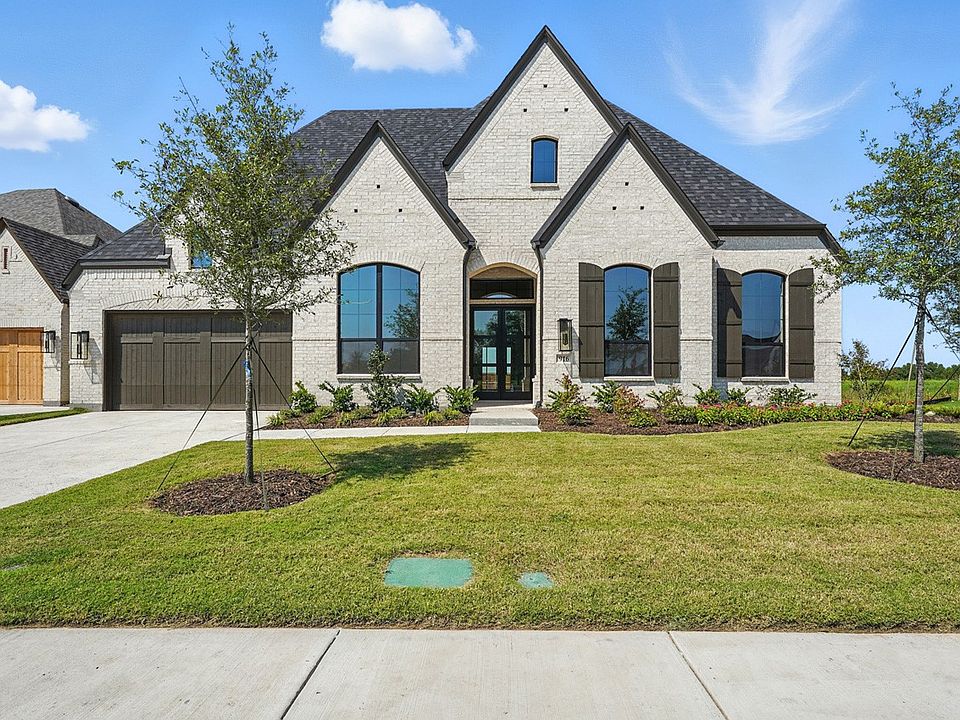MLS# 20970949 - Built by Highland Homes - Ready Now! ~ 1 Story, 4 bedrooms, 4 Bathrooms, 1 Powder Bath, Family Room with Sliding Glass Doors, Game Room, Entertainment, Formal Dining with Butlers Pantry, Study, Extended Covered Patio, 3 Car Tandem Garage. Award winning floor plan on a Corner Lot. Signature Kitchen with abundant cabinetry in this executive home with luxe Black and Gold accents throughout. Oversized front bedroom and numerous upgrades including Level 4 Eng. hardwood floors and