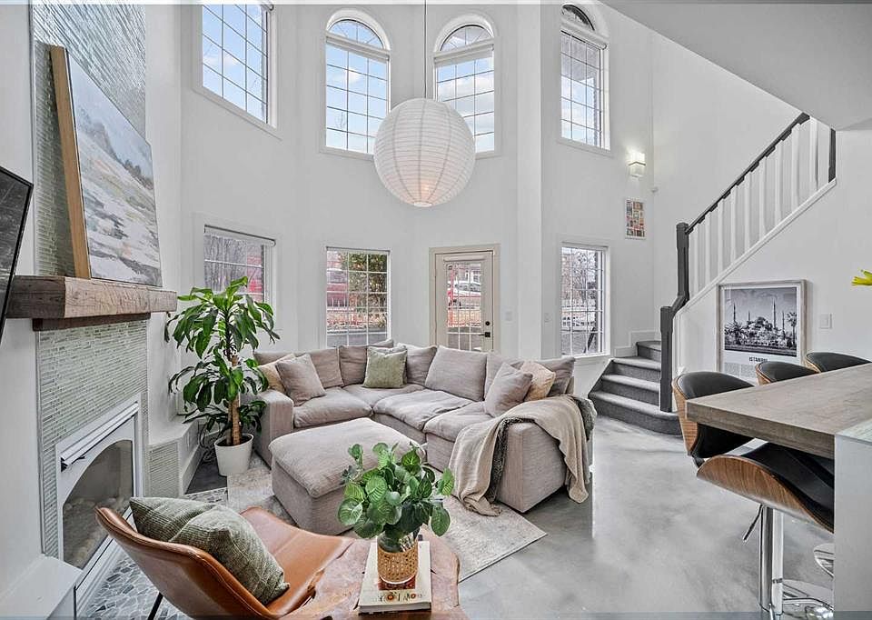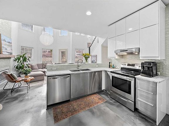 Sleek stainless steel appliancesAmple prep spaceNew breakfast barLarge south facing windowsPrivate patioNew custom mantleNewly carpeted stairs
