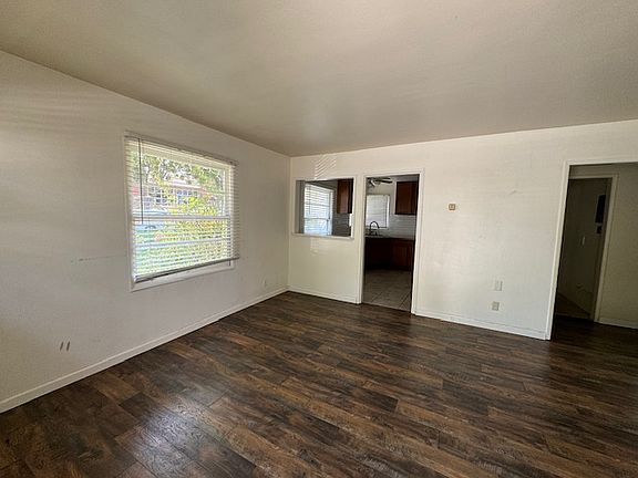Single Story, Front Duplex, 2 bedroom, 1 bath, indoor Laundry room, Large Living room, Kitchen with eat in area, Newer kitchen cabinets, Laminate flooring throughout. Window AC. Wall Heater. $2100. per month. Comes with a one car garage. Water, trash, and gardening service included.
