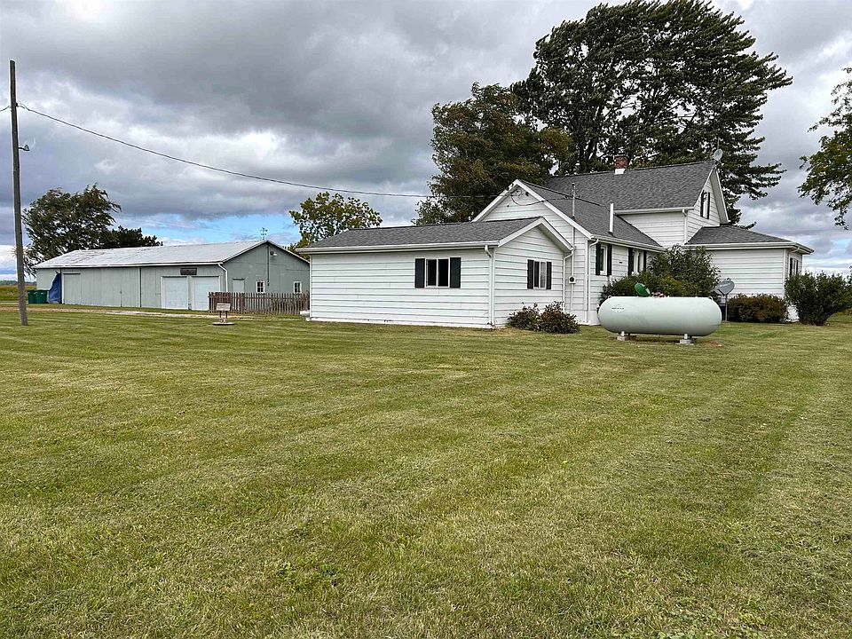 YES you can have it all!!! This 3 bedroom home sits on 3.74 acres with an attached garage and 2 Polebarns (40x96 & 28x78). The small barn is all concrete floor, 220 power, a/c & heat, & has 2 overhead doors. The larger barn has about 1/3 concrete floor, also with a furnace and electricity and natural light roofing. All on a beautiful treed lot with some being pear and apples. Main level of the house has been freshly painted. Features coved ceiling in the living room, large rooms, updated windows, roof, furnace, and central air. Immediate occupancy is available.