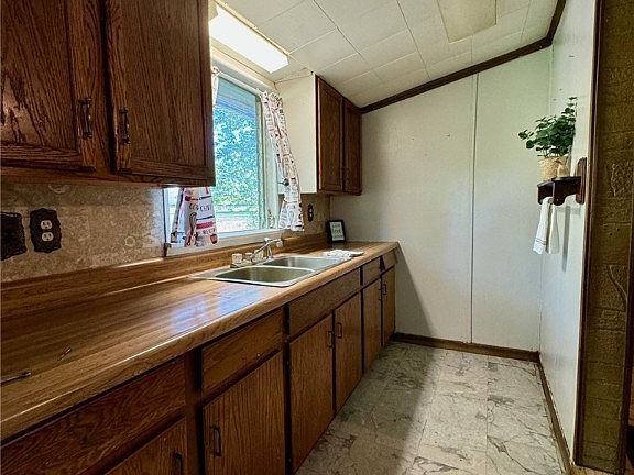 This home seems a great deal like a cottage! The spacious living room is 21 X 14 with sliding doors to the back deck. The kitchen area with sink opens to a larger area for appliances, space for an island & an eating area, 2 bedrooms and one bath. This home sits on just under an acre of a tree-lined lot, .90 of an acre! The home needs some TLC. It is located in Springfield Township. Water softener newer within 12 months & roof is approximately 4 yrs.