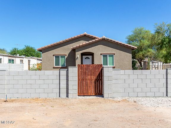 Discover this brand-new contemporary home in the heart of Central Tucson! This completed 2025-built residence features 3 spacious bedrooms and 2 beautifully appointed bathrooms across 1,368 sq ft of modern living space. The open-concept great room is perfect for entertaining, while the chef's kitchen delights with knotty alder cabinets, granite countertops, stainless steel appliances, and nice size pantry.Enjoy designer touches throughout--high ceilings, floating bathroom vanities, and a mix of ceramic tile and plush carpet flooring. The primary suite features a stylish bathroom with a granite-topped vanity and walk-in shower. Energy-efficient heat pump heating and cooling ensure year-round comfort. Set on a 0.14-acre lot with decorative gravel landscaping in the front and ample parking along the front and side, this home is ideally located near shopping, dining, schools, and freeway access. No HOA! The buyer's package includes a stainless steel refrigerator, washer and dryer, and blindsmaking this home truly move-in ready. A 2-year builder's warranty is included for added peace of mind.