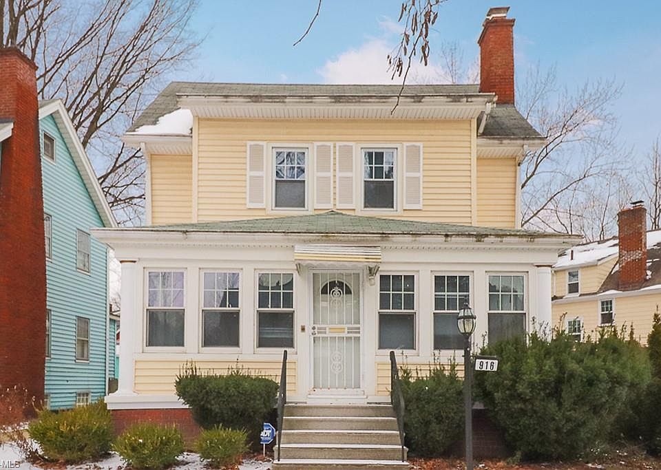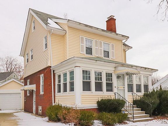This elegant home in the popular Cleveland Heights neighborhood would make a ideal first home or investment property. The spacious rooms are bright and airy. Stepping into the living room from the three season room, you'll find recently updated flooring, white trim that opens up the space and plenty of natural light from the many windows. The cozy dining room has a convenient built-in china cabinet and a bumped out back wall that would make the perfect reading nook or bar area. An updated kitchen has fresh tile backsplashes, modern countertops and lots of cabinet space. Upstairs you'll find 3 spacious bedrooms, each with its own closet and updated flooring, and the full bath. The full size basement is unfinished, but incredibly open with tons of room for laundry, home improvement projects, storage and has a half bath. The partially fenced in backyard is perfect for hosting summer parties. Don't wait to schedule a time to view this charming home!