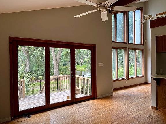 That view!! Enjoy the lakefront view from this freshly-painted three bedroom, two bath home on Wilmington Island. With hardwood floors and many bookcases throughout, enjoy the large, open living room, dining room and kitchen with French doors that lead to the waterfront deck. Upstairs are three bedrooms, two bathrooms and laundry room, and downstairs is a bonus workroom with a window AC unit and outdoor access. Two car garage and clothes washer and dryer included. Perfect for a family , this house is zoned for May Howard Elementary, Coastal Middle and Islands High Schools.