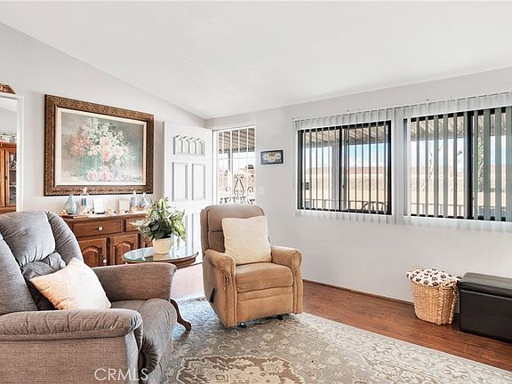 Welcome to this beautiful and well cared for home in a serene senior community in the city of Hesperia! This home is centrally located to all amenities that this city has to offer! Did I mention that it comes with TONS of upgrades! Recently painted inside and out, newer appliances and a new AC unit was installed in 2020. This expansive, over 1,500 square foot home offers three bedrooms with the primary suite situated on the opposite side of the remaining two rooms for additional privacy. The large master suite offers a walk-in closet, private bath with an updated walk-in shower with a glass door and a private patio exit! Let me tell you about this kitchen in pristine condition with freshly painted cabinetry complete with a double oven, new range and dishwasher! The kitchen offers a ton of storage including an impressive custom pantry made of solid wood. There are two dining areas off the kitchen and the living room offers vaulted ceilings that create a wide open space to enjoy and entertain. The indoor laundry is large and offers complete convenience with its own designated room in the home. The community offers a clubhouse, sparkling pool and jacuzzi. I invite you to come check it out!