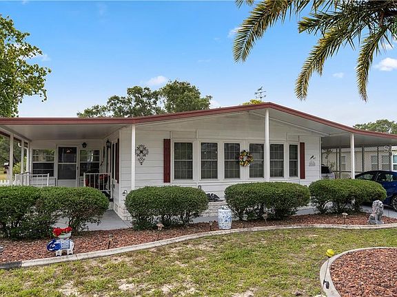 Enjoy Florida living at its finest in this beautiful 2/2 home located in the extremely desirable golfing community of Brookridge. This beautifully landscaped home has extreme curb appeal and a palm tree as you pull up. Want to enjoy your morning cup of coffee on your patio? This home has four! Two outdoor patios, one enclosed, and a Florida room! Enjoy an open floor plan perfect for entertaining guests. The kitchen features new waterproof laminate flooring, a large island with a flat top range, and a breakfast bar. Generous cabinet space and pantry for all your storage needs. Dining area with built-in china cabinet. The living room features a full-sized wall unit/entertainment center. Kick back and relax in the sitting room with a built-in wet bar and sink. This home has not one, but two master suites with walk-in closets! First bath has waterproof laminate flooring and tub/shower combo. Second bath has laminate flooring, his/her sinks, and a built-in vanity. Fully enclosed Florida room with tons of windows designed to let in as much sunlight and fresh air as possible. Double doors leading to the laundry/shed with tons of storage space and a golf cart ramp/garage! Make Brookridge your full-time home or vacation getaway to escape the cold northern winters! A world-class golf course isn't the only perk of living here. Enjoy an olympic-sized pool, horseshoe, shuffleboard, bocce ball, tennis, and classes such as, painting, ceramics, photography, and so much more!! Conveniently located near all shopping, restaurants, and hospitals. Don't miss out on this beauty! Schedule your private showing today!