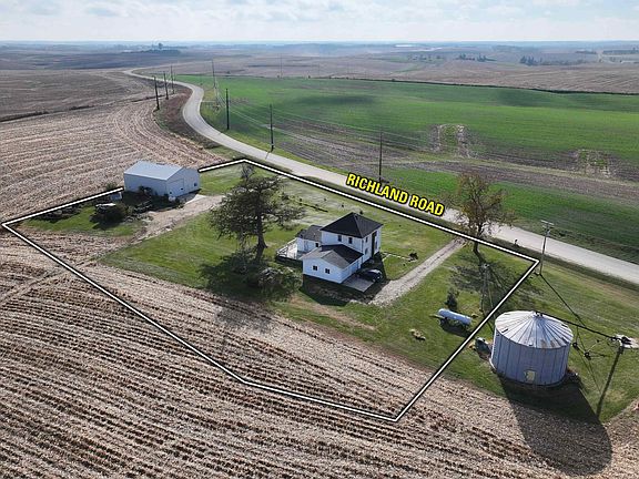 Acreage For Sale – 9162 Richland Road, Cascade, Iowa Discover peaceful country living just 3 miles southwest of Cascade with this 2.08-acre property in Jones County. The spacious two-story home was originally built in 1936 and has seen several thoughtful additions over the years, offering both charm and functionality. The home features five bedrooms, including one on the main level and four on the second floor. A full bathroom and main-level laundry provide convenience, while the basement includes a standalone shower and toilet for added utility. Outdoors, you’ll find a well-maintained yard surrounded by open farmland and scenic views. The property also includes a 40’ x 50’ heated shop built in 1990, equipped with a large overhead crane, sink, and toilet—perfect for mechanics, hobbyists, or storage needs. Whether you’re looking for a rural homestead or a country property with functional outbuildings, this acreage offers space, comfort, and convenience along hard-surfaced Richland Road.