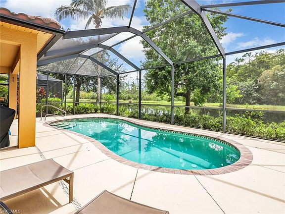 Welcome to 9162 River Otter Drive, a beautifully maintained two-story pool home in the highly sought-after gated community of Reflection Isles. Situated on a quiet cul-de-sac with a peaceful lake and preserve view, this residence offers a perfect blend of comfort, style, and modern upgrades, making it an exceptional opportunity for buyers seeking a move-in ready home. From the moment you arrive, the curb appeal is undeniable with lush landscaping, a paver driveway, and elegant double entry doors leading into a spacious foyer. Inside, the first floor is designed for both functionality and entertaining. The layout includes a formal living room, a separate dining room with tray ceiling, a guest bedroom, guest bathroom, and a spacious great room that flows seamlessly into the gourmet kitchen. The kitchen is equipped with granite countertops, an island, abundant counter space, double wall oven, electric cooktop, ample cabinetry, and upgraded lighting. Many windows throughout the home are enhanced with plantation shutters, adding charm and privacy. Tile floors run throughout the downstairs, while the upstairs features plush carpeting. 3 bedrooms and 2 bathrooms are located upstairs, including the impressive primary suite which offers a tray ceiling, large walk-in closet, and a spa-like bathroom with dual vanities, a soaking tub, and a separate glass-enclosed shower. The upstairs loft has been transformed into a fully functional media room, complete with a projector, screen, and Bose surround sound system, creating the ultimate space for movie nights and entertainment. Step outside to the screened lanai where the sparkling pool invites relaxation while overlooking the serene lake and preserve. This outdoor space is ideal for hosting gatherings or simply enjoying Florida’s year-round sunshine. Recent updates and upgrades further enhance the value of this home. The roof, soffits, and downspouts were replaced in 2023. Both air conditioning units are brand new—Unit 1 was installed in January 2024 and Unit 2 in January 2025. Additional highlights include fresh interior and exterior paint, newer water heater, whole home water filtration system, tinted windows, garage pull-down screen door, and security camera system for added peace of mind. To maximize energy efficiency, the attic has been upgraded with 10 inches of additional R-12 insulation. Living in Reflection Isles means enjoying a vibrant community surrounded by natural preserves. Residents have access to fantastic amenities including a clubhouse, resort-style pool and spa, fitness center, tennis and basketball courts, and a playground. Conveniently located in the Daniels Parkway corridor, you are close to shopping, dining, schools, RSW airport, and easy access to I-75.
